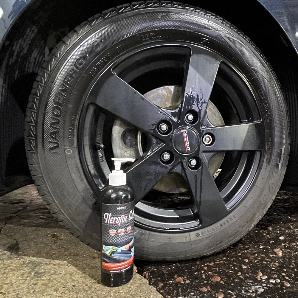 ПРИМЕНЕНИЕ: Расход от 5 до 10 мл на одно колесо, в зависимости от размера шины. На предварительно очищенную и сухую поверхность, при помощи губки-аппликатора или салфетки из микрофибры, круговыми движениями нанести состав на автомобильные шины до появления насыщенного матового цвета.